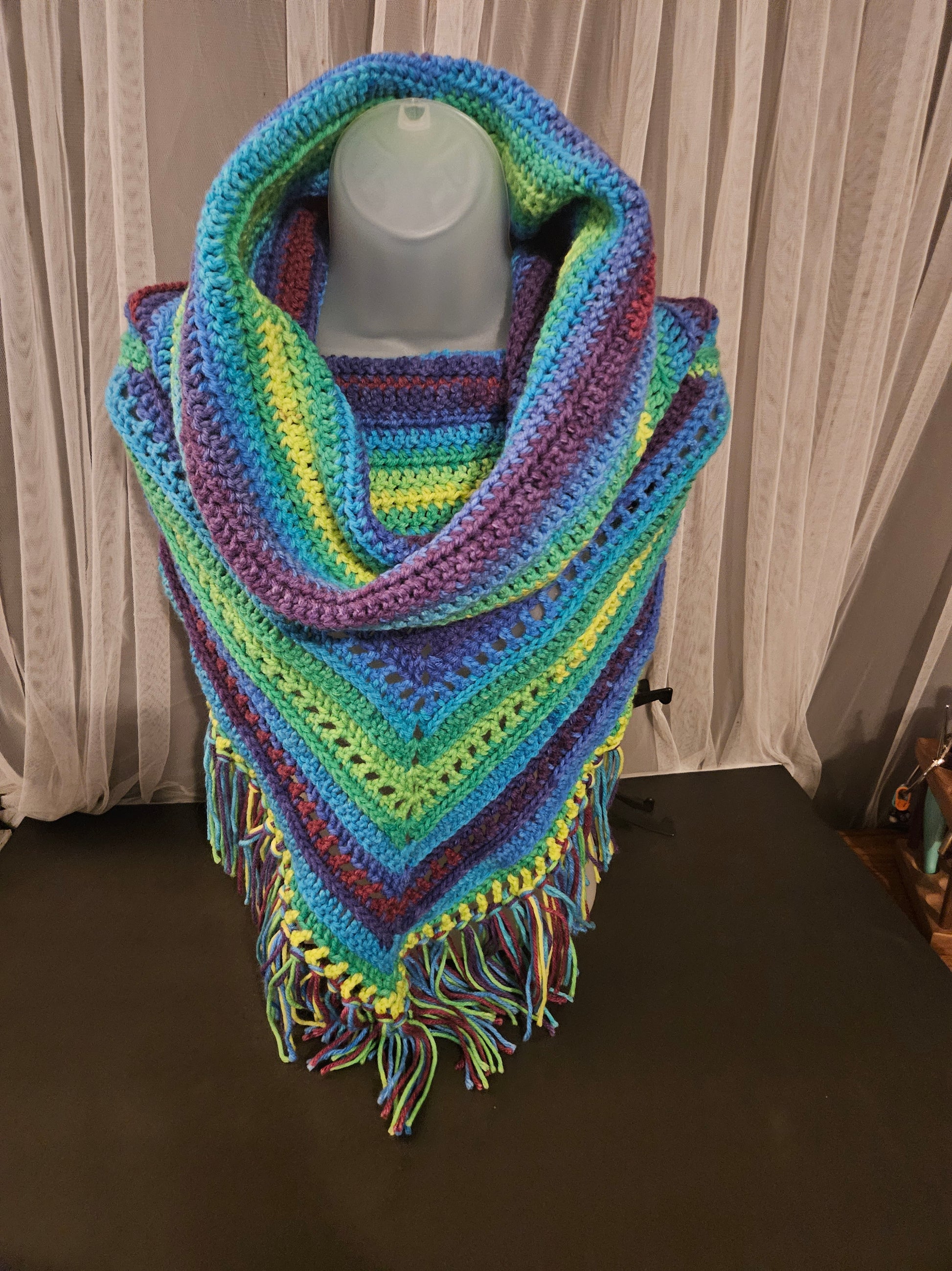 This hooded scarf is based on the Wild Oleander hooded scarf pattern by Wickedly Handmade Designs